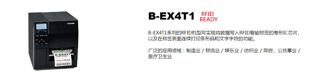 B-EX4T1系列的RFID机型可实现将数据写入RFID智能标签的卷形IC芯片、以及在标签表面连续打印条形码和文字字符的功能。