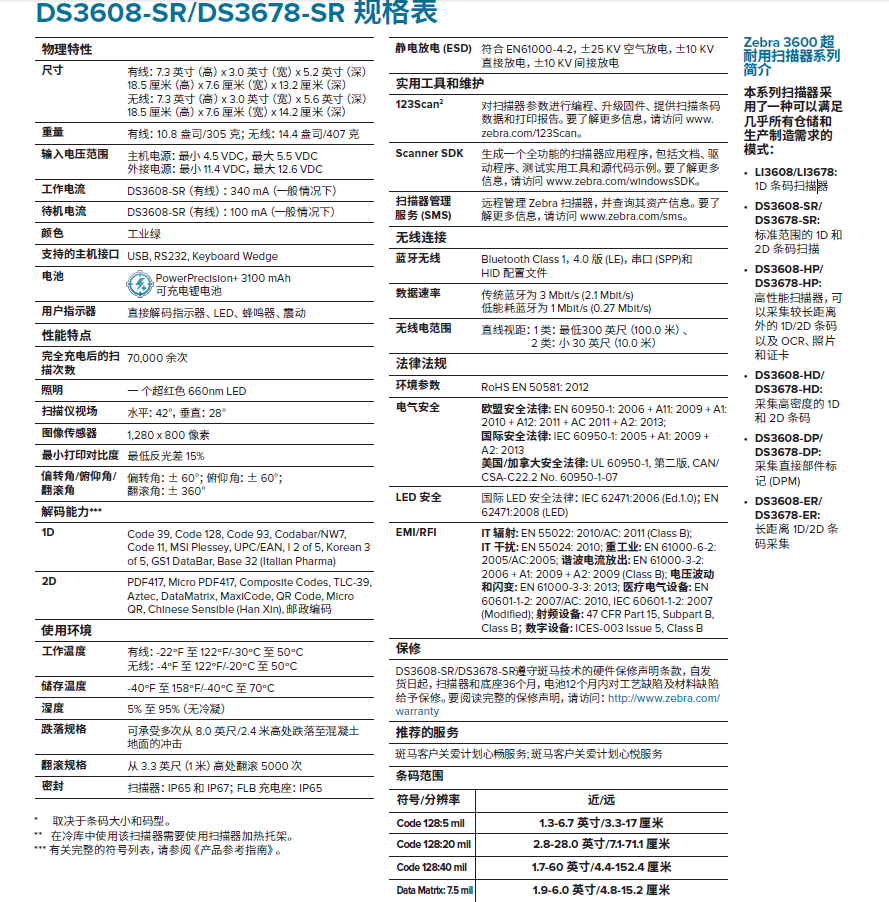 • DS3608-SR/DS3678-SR 一维/二维超耐用型扫描器
