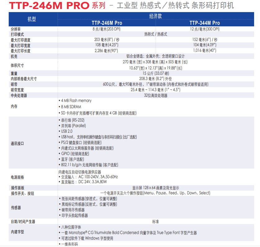 TSC TTP-246M Pro系列 打印机