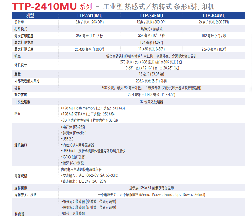 TSC TTP-2410MU系列 打印机